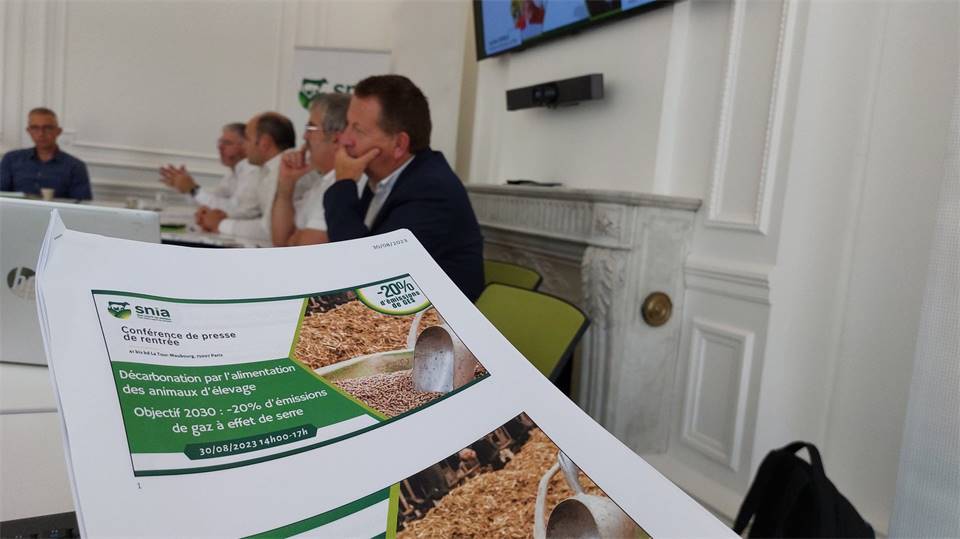 La conférence de presse de rentrée du SNIA s'est déroulée le 30 août 2023, sous le thème "Décarbonation par l’alimentation des animaux d’élevage. Objectif 2020-2030 : -20% d’émissions de gaz à effet de serre".